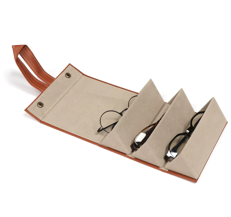 This multi-slot sunglasses storage case comes in two classic colors, black and brown. You can choose between the 2, 3 or 5 slots, depending on your needs. Our Eye-Wear Wallet is not just a storage solution but also a stylish accessory that complements any outfit.