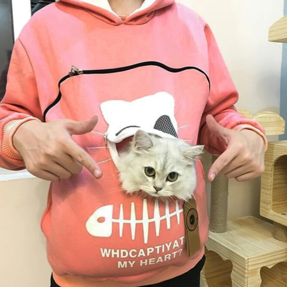 Why wear a boring sweatshirt when you can keep yourself and your furry friend warm in a cat hoodie?